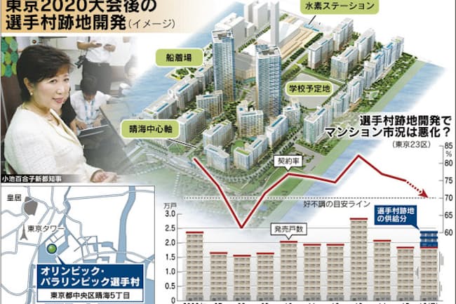 顧客の中心部志向は高まる一方で郊外のマンションは振るわない。銀座からタクシーで15分の場所でマンションが出てくるなら需要は落ち込む。五輪開催前に選手村の跡地利用にどう道筋を付けるか。東京都がさじ加減を間違えると、デベロッパーは壊滅的な打撃を受けかねない。(前野雅弥、山根昭)