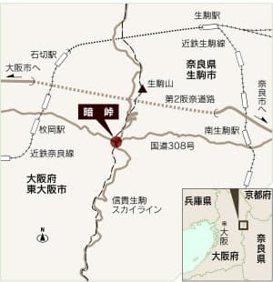 大阪府と奈良県の境にある生駒山。山頂近くの暗(くらがり)峠を越える国道308号は、国道ながら勾配が急で道幅も狭いことから“酷道”と皮肉られる。自動車が路肩に落ちたり、横転したりすることもあるという。この道を少年の頃に自転車でよく通ったという奈良県生駒市の下西巌さん(79)の案内で、冬のある日、暗峠越えを試みた。