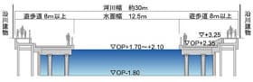 まずは、道頓堀川に架かる東側上流の日本橋から西側下流の深里(ふかり)橋まで、約800mの区間に布函を並べる。将来は西側に延長して、プールの全長を1kmとする計画だ。
