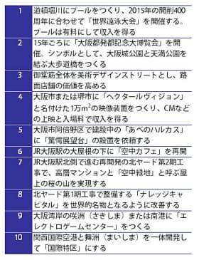 2015年夏の開業を目指して、民間主導で遠泳競技や市民が遊泳できる世界的名所をつくる。「大阪のど真ん中に見たこともない巨大なプールをつくり、観光客を呼び込みたい」。堺屋氏は記者会見でこう意気込みを語った。